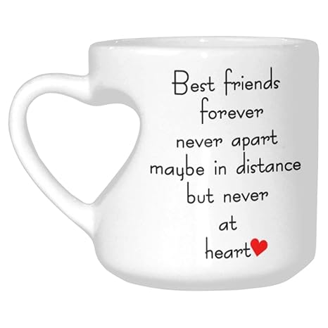 Interestprint White Ceramic Best Friends Long Distance Heart Shaped Travel Coffee Mug Cup With Sayings Best Friends Forever Never Apart Coffee Mug
